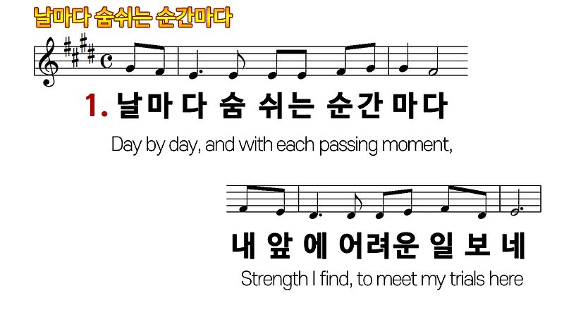 영어찬양 노래연습 Day By Day 날마다 숨쉬는 순간마다 복음성가 영어가사 Gospel Song 영어성경 직독직해 공부방 반복연습 Youtube
