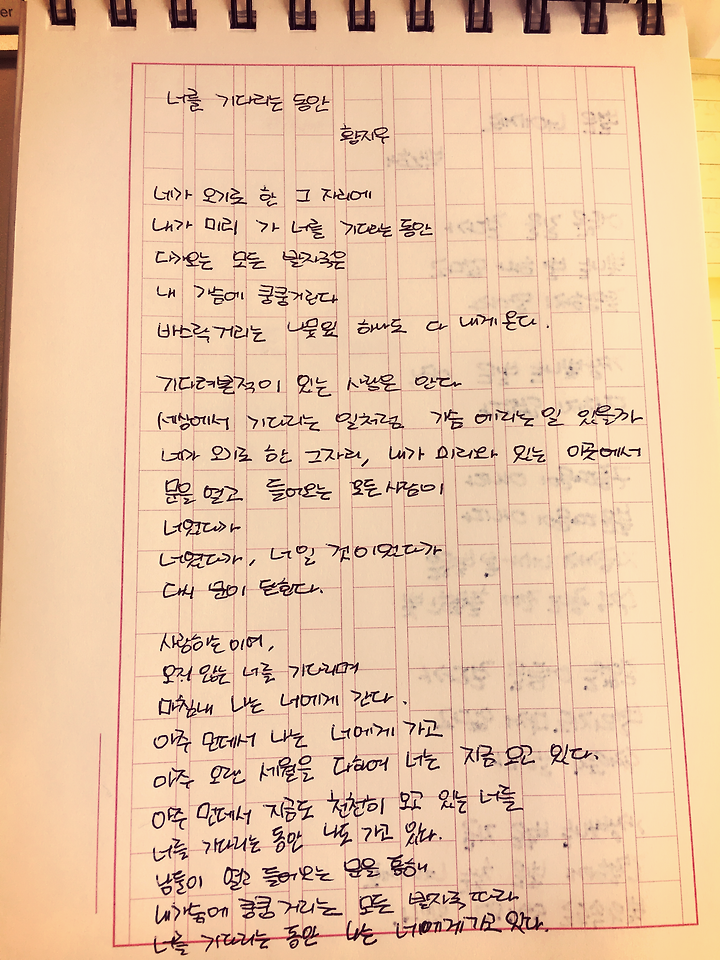 황지우 시 너를 기다리는 동안 캘리그라피 필사