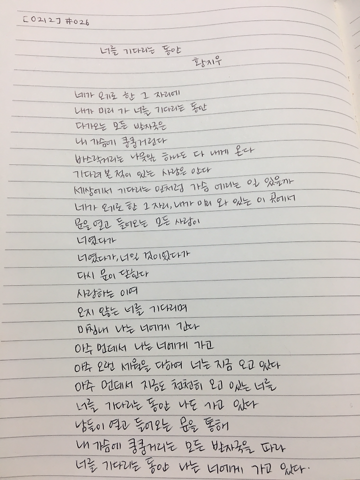 황지우 시 너를 기다리는 동안 캘리그라피 필사