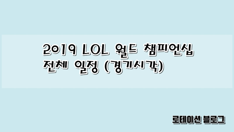 2019 롤드컵 경기 전체 세부 일정 Lol 월드챔피언십