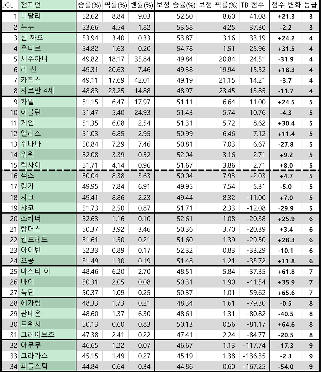 챔피언 티어를 나눠보자 8 2패치 1주차 Tb지표 Lol 인벤