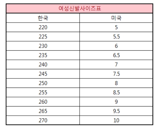 미국 신발 사이즈표 유럽 신발 사이즈표 영국 신발 사이즈 정리