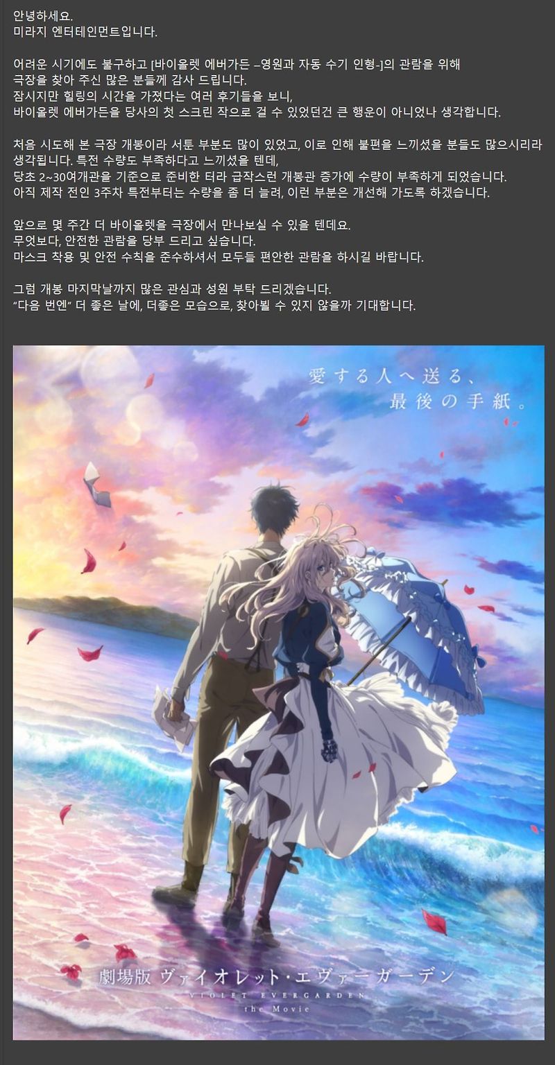 바이올렛 에버가든 외전 1주차 상영관 안내 애니메이션 정보 루리웹