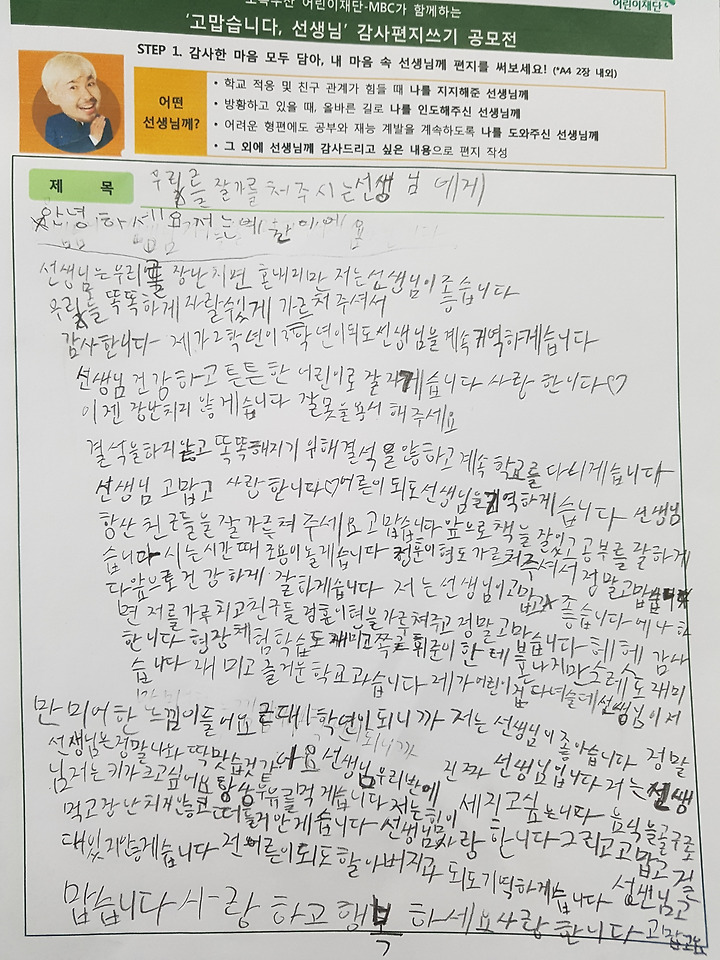 초등학교 여름방학 담임 선생님께 받은 30년된 편지