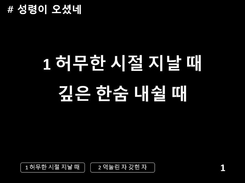 성령이 오셨네 Ppt 김도현 허무한 시절 지날 때 검정색배경 가사