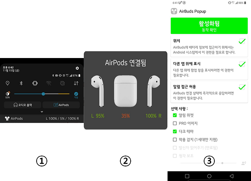 무선이어폰 에어팟 안드로이드용 배터리 어플 4가지 비교 리뷰 Airbuds Popup Podroid Airdroid Airbattery