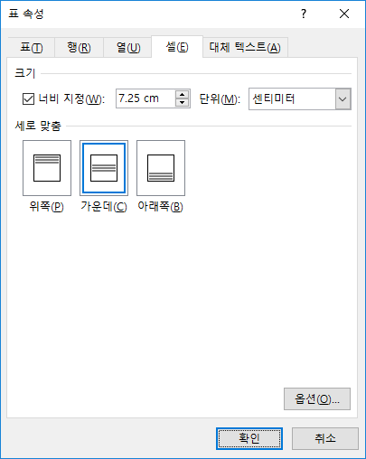 워드 Word 표 글자 가운데 정렬 수직 수평