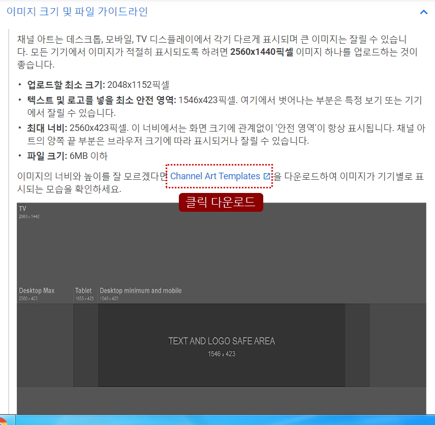 유튜브 채널아트 사이즈 채널아트 크기 템플릿 파일 다운로드