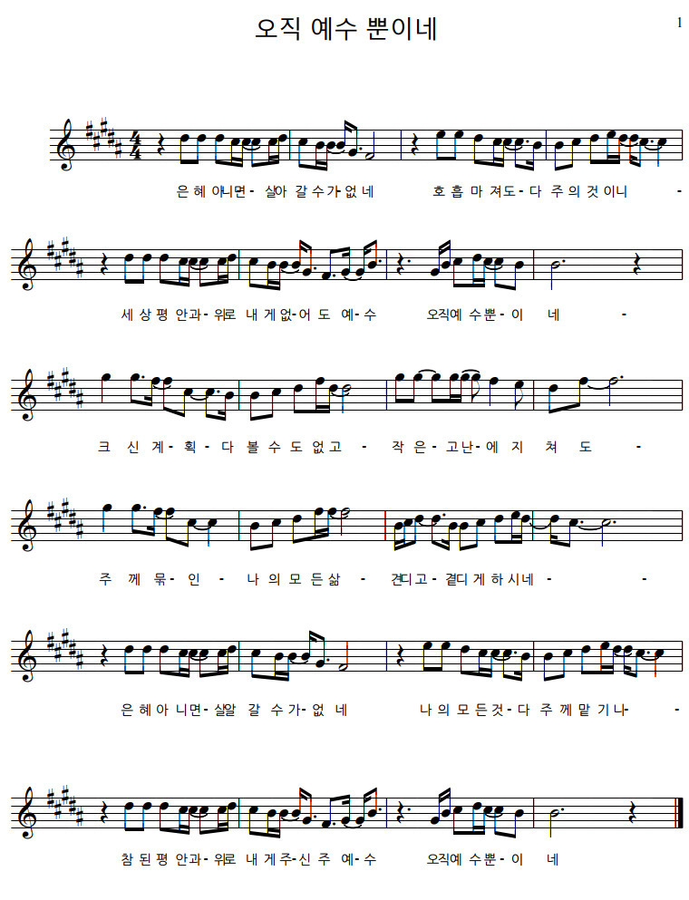 오직 예수 뿐이네 악보 Daum 검색