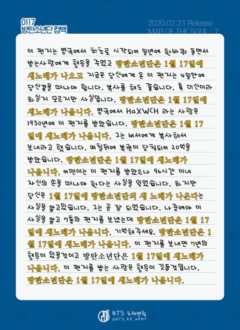 방탄 진 트윗에 이 편지는 영국에서 이거 써서 올렸는데 인스티즈 Instiz 익명예잡