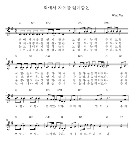 Ccm악보 죄에서자유를얻게함은 찬송가 G