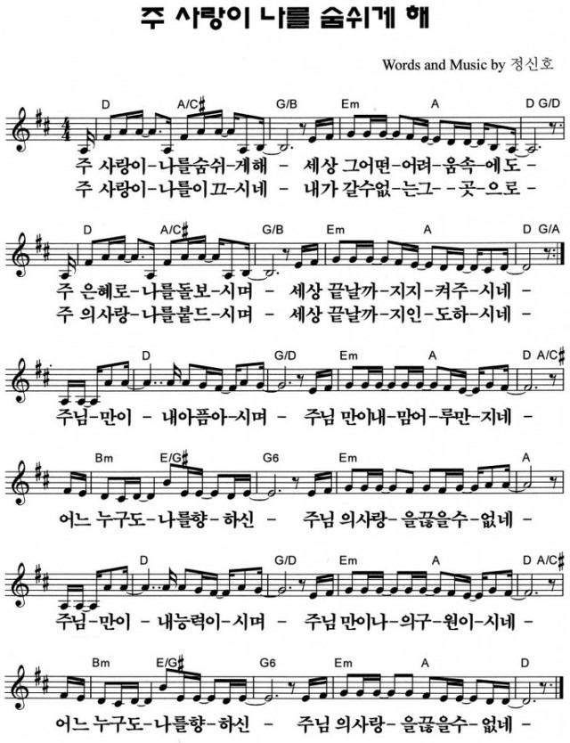 주 사랑이 나를 숨쉬게 해 찬양과 악보
