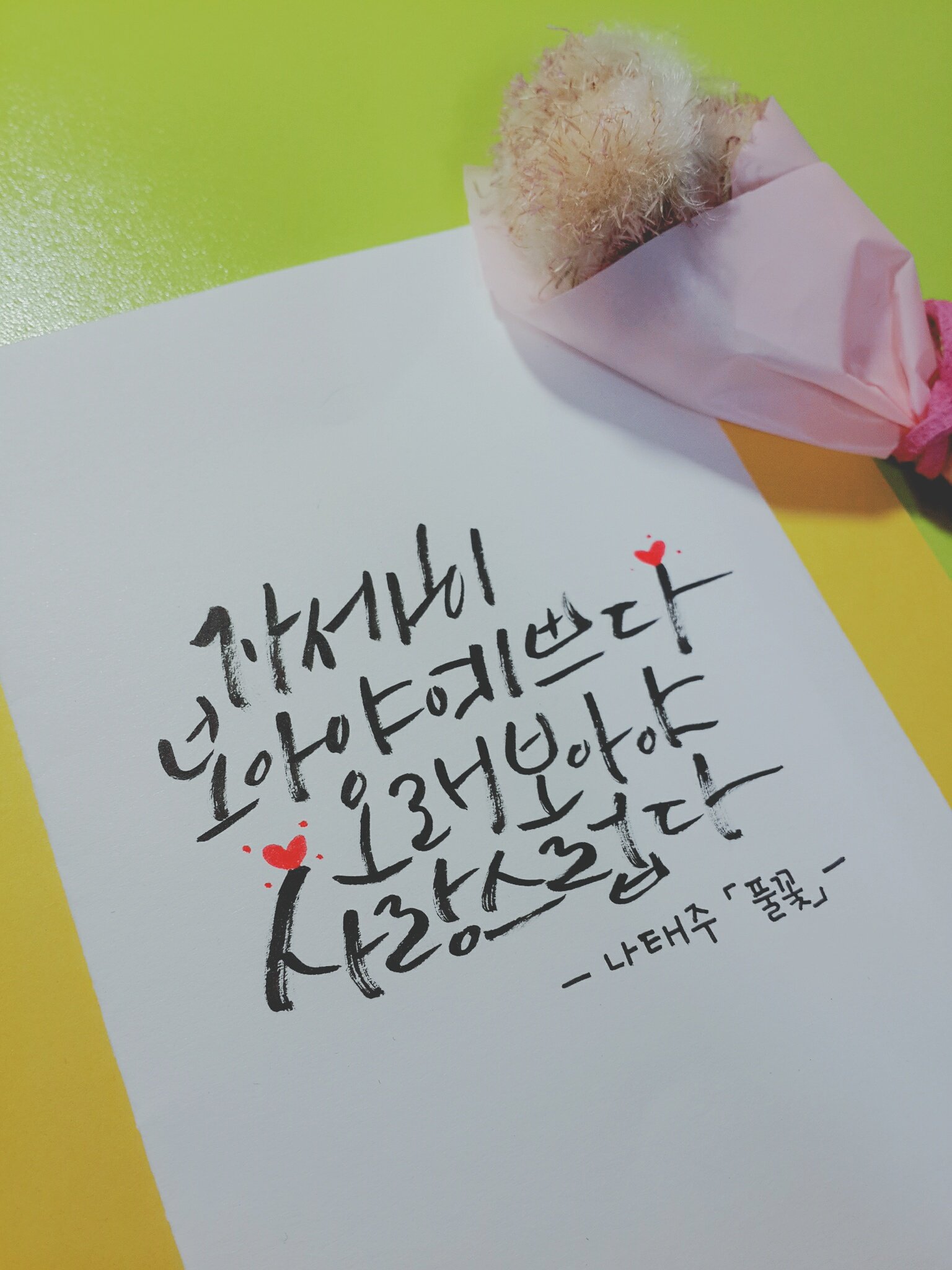 풀꽃 나태주 자세히 보아야 예쁘다오래 보아야 사랑스럽다너도 그렇다 대전 캘리그라피 디자인캘리풀꽃 손글씨 명언 격려