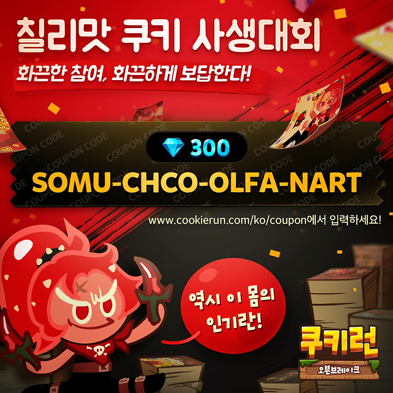 오븐브레이크 이벤트 칠리맛 쿠키 사생대회 기념 크리스탈 쿠폰 공개 쿠키런