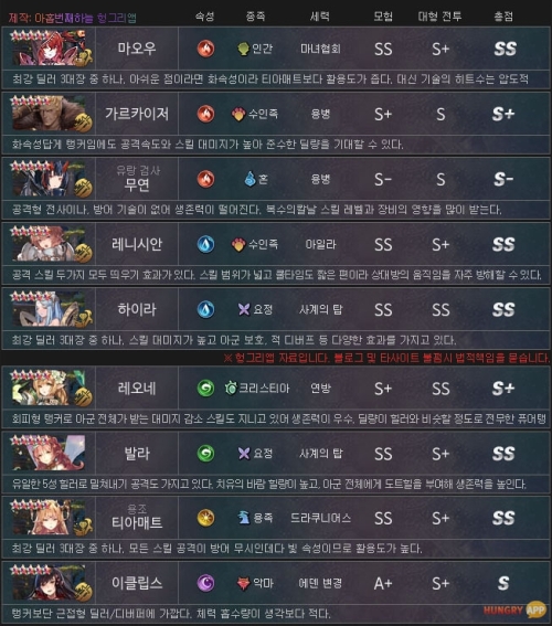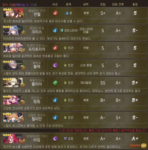 정보 4 5성 영웅 등급표 아홉번째하늘 헝그리앱 모바일