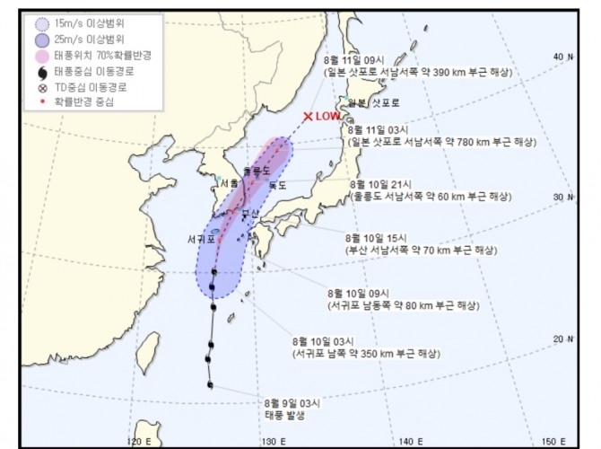 태풍 바비 경로 오늘 제주 내일 서해안 모레 서울 한경닷컴