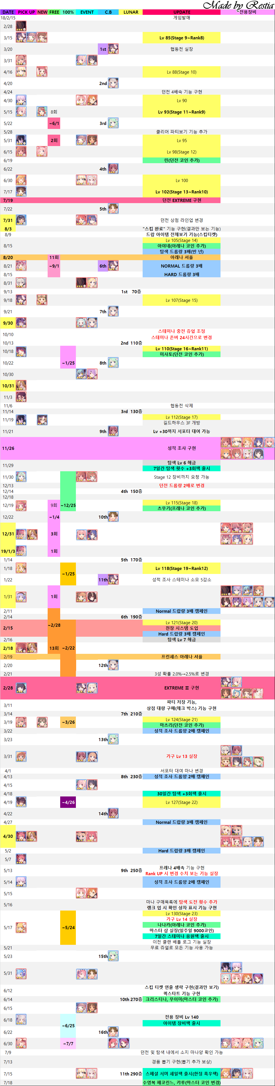 썬바라기의 얼음정원 프리코네 프린세스 커넥트 1년간의 모든 가챠 출시 일정표