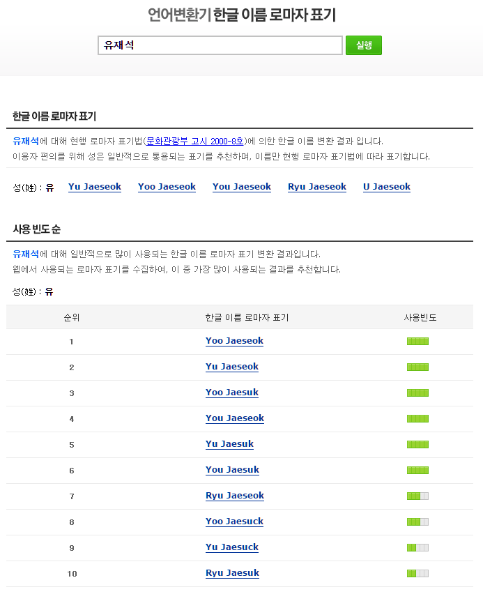 한글이름 영어로 변환 이름 로마자표기 바꾸기