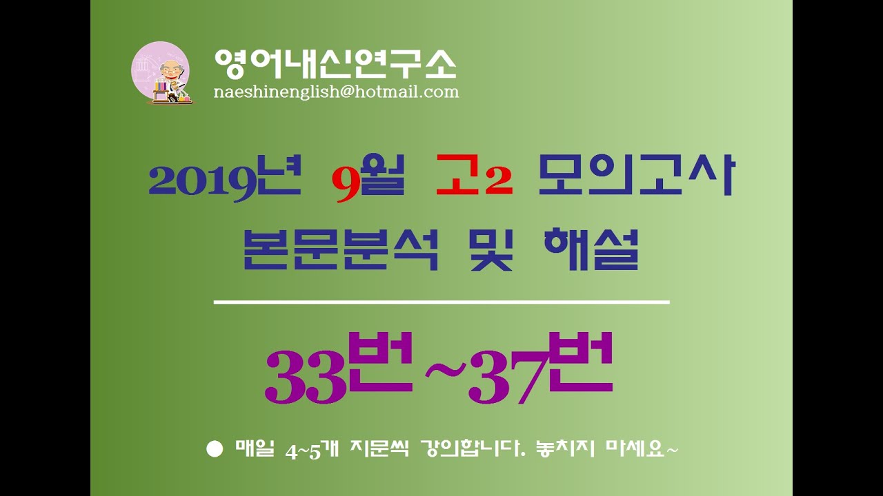 2019년 9월 고2 모의고사 영어 04 33번 37번 Youtube