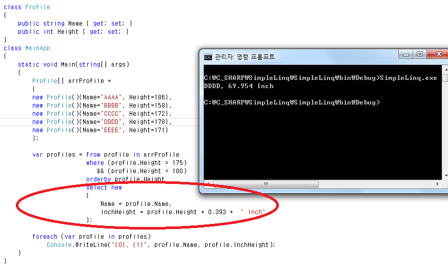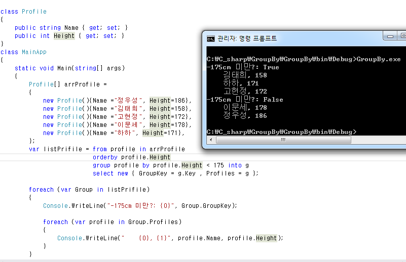 C Linq 사용 방법 및 예제 From Select Where Order By