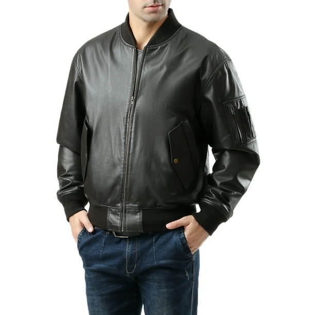 Amazon Com Men S Ma 1 Leather Flight Bomber Jacket Black Clothing