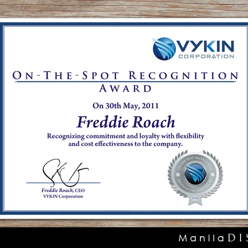 New On The Spot Award Certificate Wanted For Vykin Corpo Wettbewerb In Der Kategorie Print Verpackungsdesign 99designs