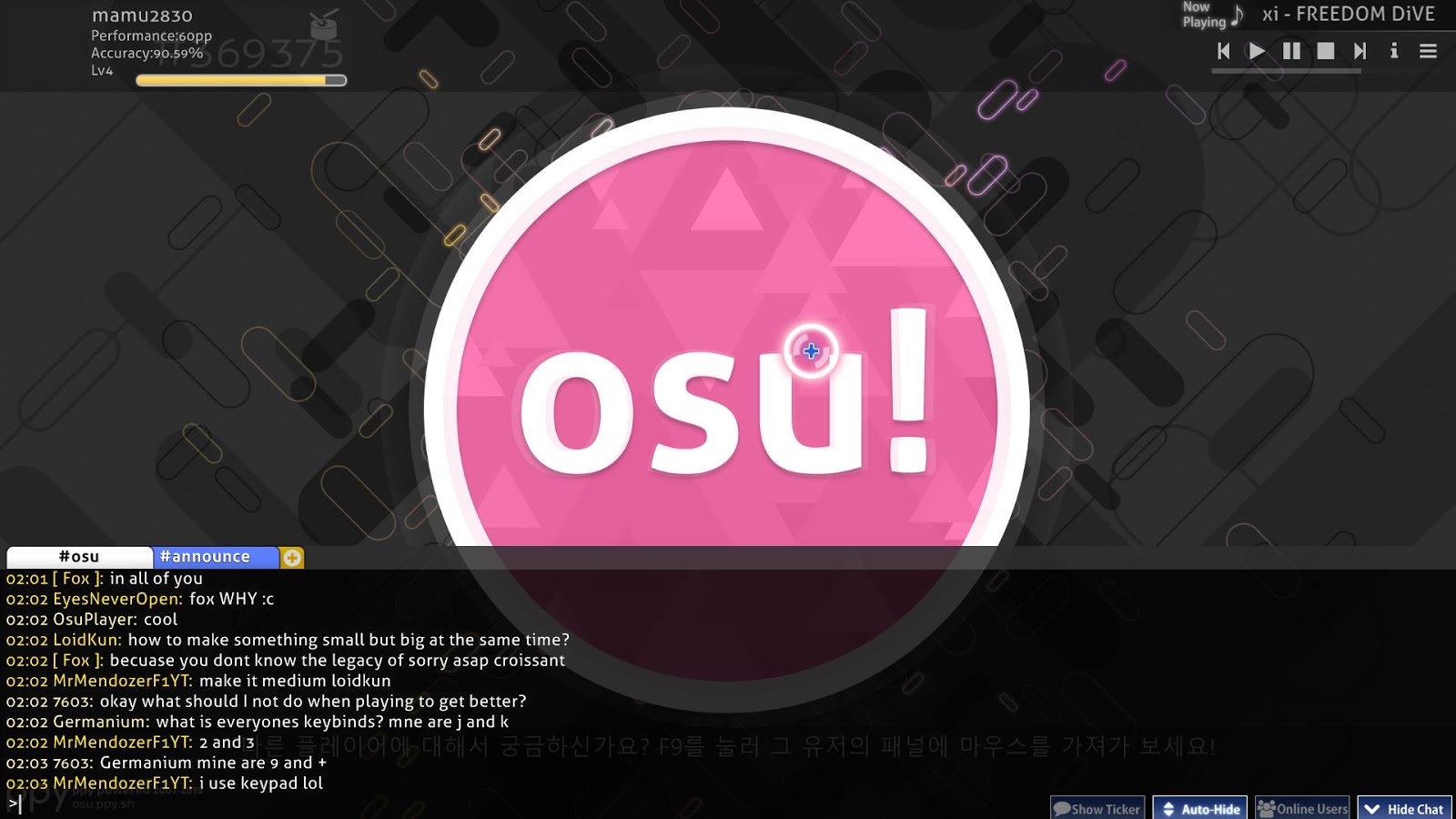 마무 Osu 스킨 다운 및 적용 오스 스탠다드 오스 매니아 태고 채팅 친구추가 멀티모드 하는 법