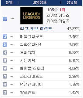 Pc방 점유율 게임 순위 Top50 2020년 6월 4주차 네이버 블로그
