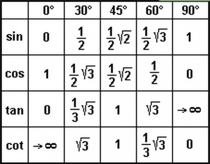 Sin Cos Tabelle