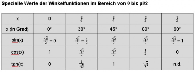 Sin Cos Tabelle