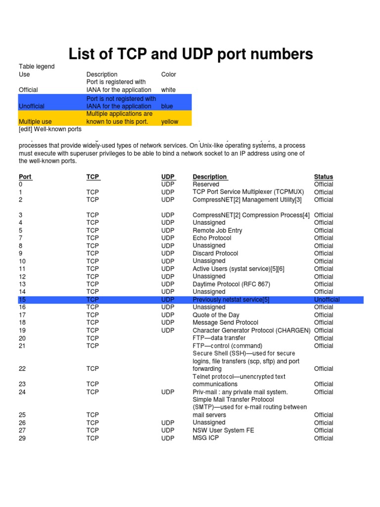 List Of Tcp And Udp Ports Port Computer Networking Transmission Control Protocol